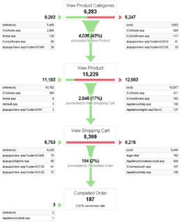 The Google Analytics Funnel Visualisation report (Goals Section) shows the pages where visitors drop out of the funnel path. Pages that lose a high percentage of traffic on the path towards a website goal are good candidates for optimization.