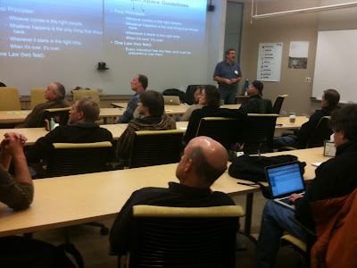 It was unseasonably snowy and cold Saturday morning, but in spite of the weather, almost everybody that signed up in advance was there, along with a few last-minute registrants. We had nearly 40 attendees join us for 15+ sessions, plus the always loved "hallway track." Many thanks to the three Googlers who came out to shepherd our group and facilitate the meeting.